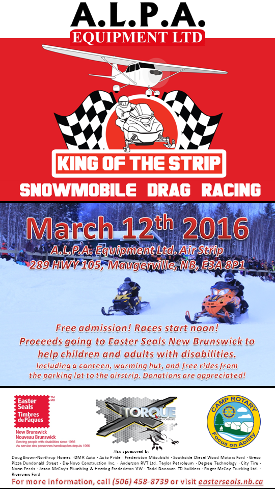 Easter Seals is proud to present the 3rd Annual "King of the Strip" snowmobile drag races. We are back in action after a weather cancellation, but we're now even more ready to race!