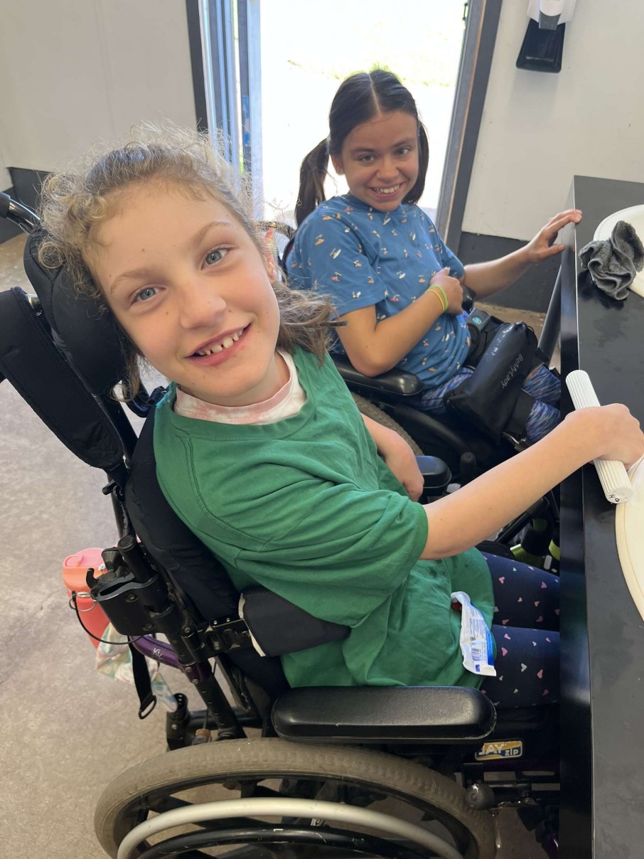 Brett Hopper (Green Shirt) is an 11-year-old student in grade 6 at Magnetic Hill School in Moncton. She lives with her parents, Ashley and Jordan, and her younger brother, Dylan. Brett was born with spastic quadriplegia cerebral palsy (SQCP) which affects all four of her limbs and causes her difficulty in speaking clearly and doing everyday life tasks. Brett has received occupational therapy, physiotherapy, and speech therapy services at school. She follows a personalized learning plan for her educational goals. Brett also visits the Stan Cassidy Centre for Rehabilitation in Fredericton where she receives Botox injections for the spasticity in her legs in an attempt to avoid additional hip surgeries. Brett has attended camp for 2 years now and is excited to go back for her 3rd time this Summer.